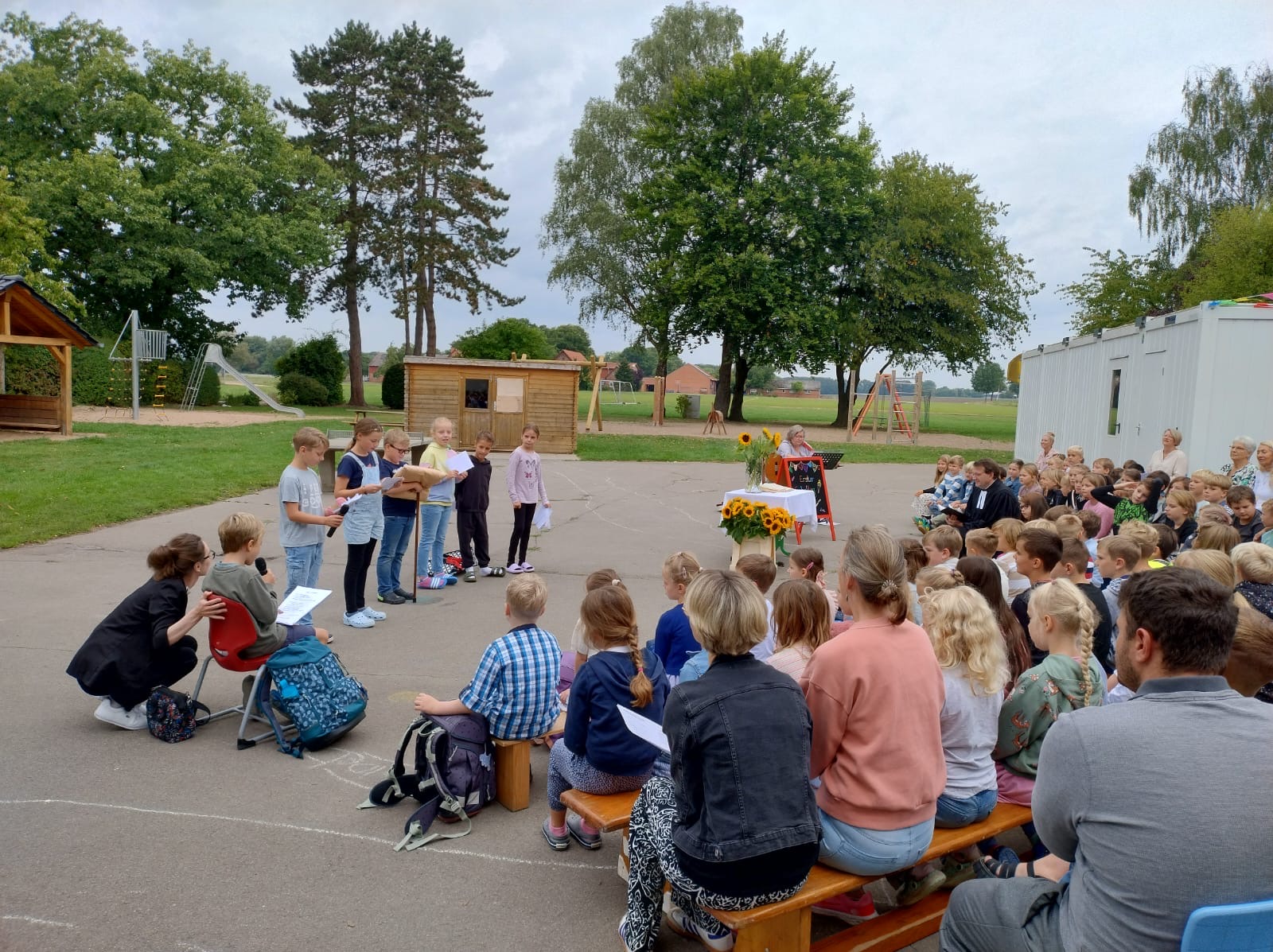 Am Standort Friedewalde hieß es heute: Herzlich willkommen, liebe Erstklässler! Mit einem fröhlichen Gottesdienst unter der Leitung von Pastor Salberg starteten die neuen Schulkinder in ihren großen Tag. Für die musikalische Stimmung sorgte Regina Kruse-Mohrhoff.